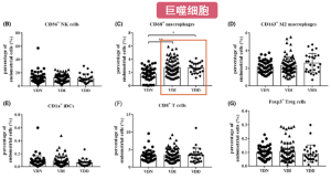 b) 补充维生素D后,评估子宫内膜免疫细胞比例变化,在补充后达充足组别中,观察到CD68 +巨噬细胞比补充前有降低趋势(图7)。