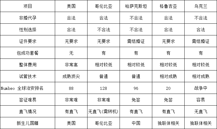 结合法律政策、出行便捷性、医疗水平、治安成本等关键维度,为大家整理了美国、哥伦比亚、哈萨克斯坦、格鲁吉亚、乌克兰五个热门目的地的核心指标,各项差异一目了然,方便大家快速对比筛选。